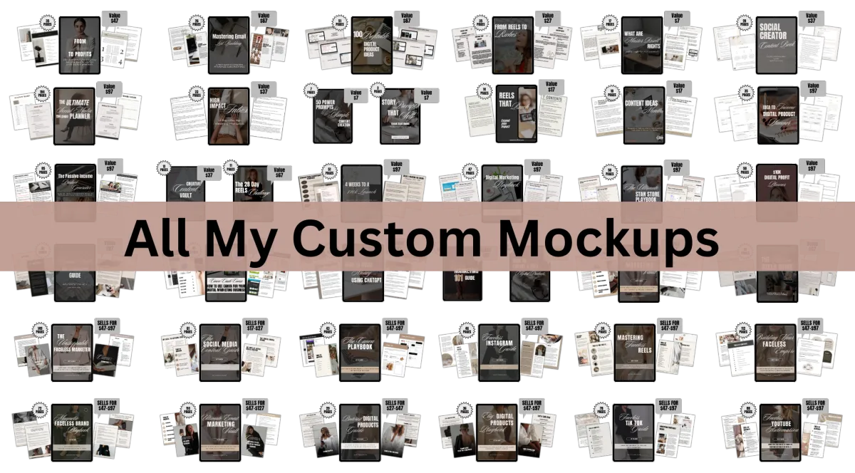 INCLUDES: Building your faceless empire, mastering faceless reels, faceless instagram guide, the canva playbook, the social media content guide, the unstoppable faceless marketing, faceless youtube automation, faceless tiktok guide, etsy digital products playbook, pinterest digital products, the ultimate email marketing vault, magnetic faceless brand playbook, faceless instagram reel cover photos, faceless video library, faceless basics mini course, canva basics mini course.